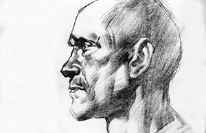 Students will learn how to lay-in and construct the head, how to simplify and design the anatomy, and how to use light, shadow, and edge control to create 3-dimensional form in their drawings.